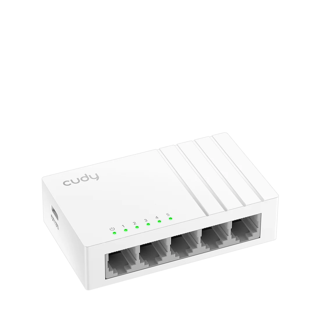 A mini Ethernet switch powered by USB-C, ideal for sharing a wired network on a desktop, wall, or in a distribution box.
