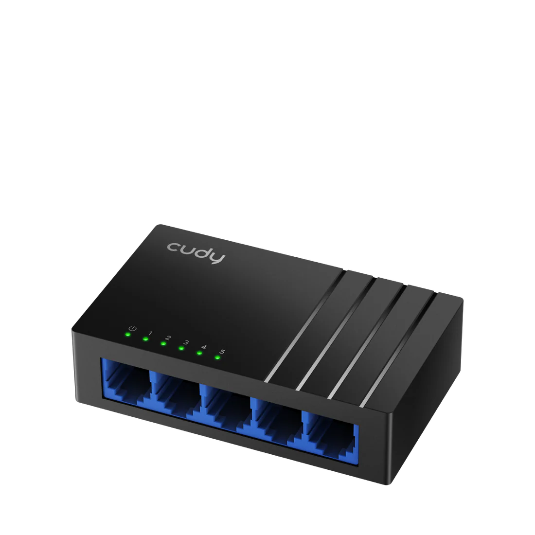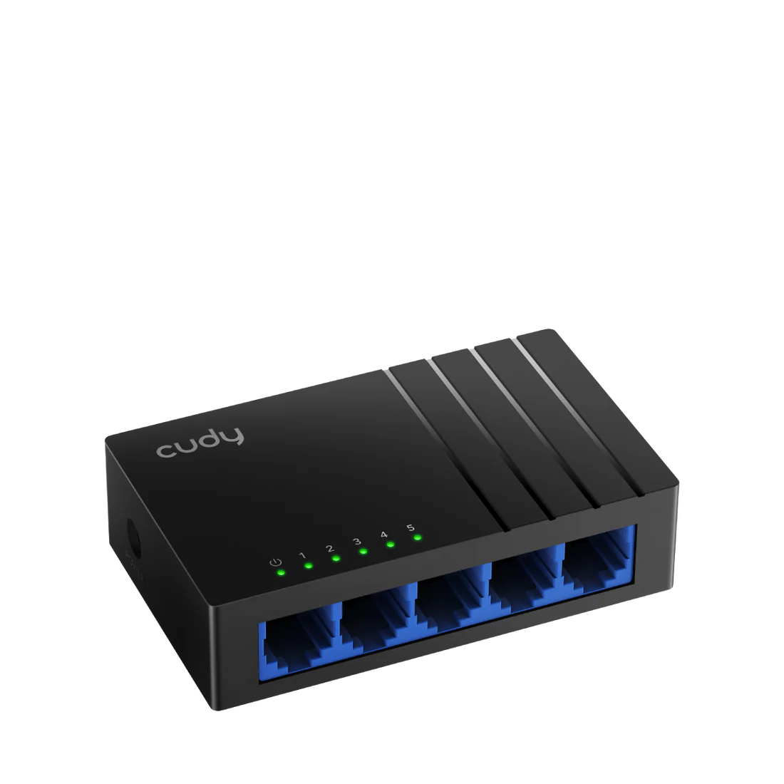 A 5-GbE switch with a modern design, supporting full Gigabit speeds on all five ports over distances up to 140 m, and featuring a super-efficient chipset with idle power consumption of just 0.2 W.